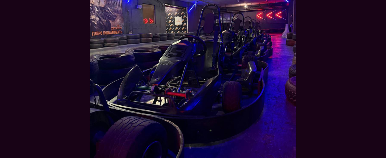 - Огромный крытый картодром с площадью 3500 м² и протяженностью круга 550 м.